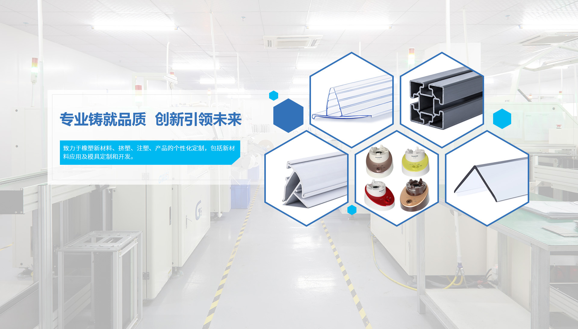 主要生產各類橡塑特種管材(氣管、水管、油管、醫療管等特種介質管和功能性管材)、異型材、標價條、展示道具、電子標牌、新型建材、運動產品、特種密封膠條,LED光電擠塑和注塑類產品,及特殊功能新材料供應。